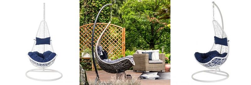 - Hängesessel mit Stütze: Dieses Stück bietet mehr Vielseitigkeit, da Sie es leichter bewegen können. Es ist kleiner als das Deckengerät, sodass Sie es in engeren Räumen platzieren können. Außerdem hat es einen kleineren Bewegungsbereich.