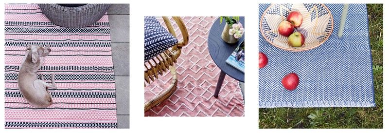 Outdoor-Teppiche sind ein dekoratives Stück, das Stil hinzufügt und es Ihnen ermöglicht, die Essenz Ihres Charakters mit den geometrischen Mustern und Farbkombinationen, die sie Ihnen bieten, widerzuspiegeln. Diejenigen, die aus recycelten Materialien hergestellt werden, liegen im Trend, ein Lebensstil, der sicherlich hier bleiben wird.