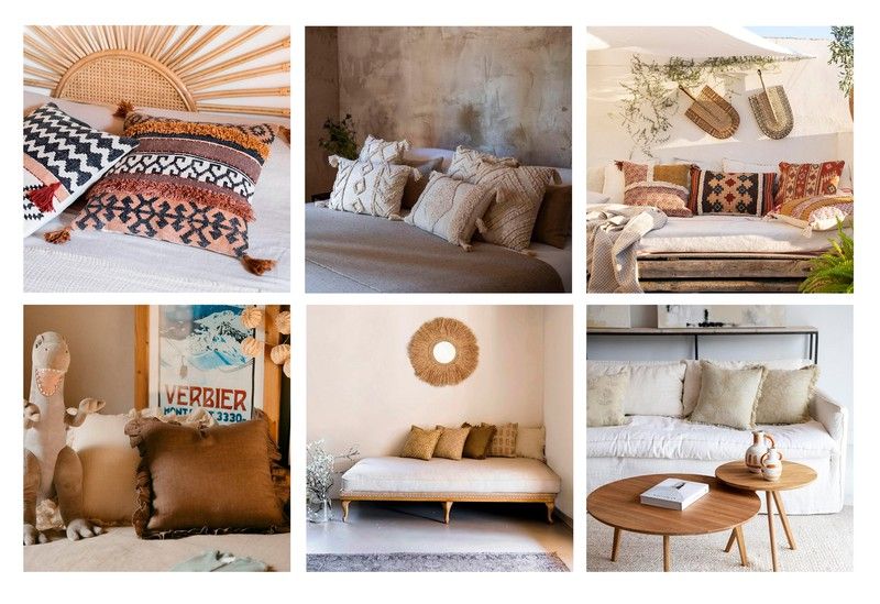 So sorgen zum Beispiel mehrfarbige Kissen für einen Hauch von Lebendigkeit und lassen sich perfekt mit farbigen Sofas oder glatten Betten kombinieren. Dies ist das Beispiel des mehrfarbigen Kissens aus Baumwolle der Marke Producto de Alta Decoración oder das aus der Copal-Kollektion desselben Herstellers. Die Kombination aus Farben, Formen und Materialien verleiht der Dekoration einen böhmischen und rustikalen Touch, oder was das gleiche ist, romantisch und natürlich. Alles sehr passend zur Frühlingssaison.