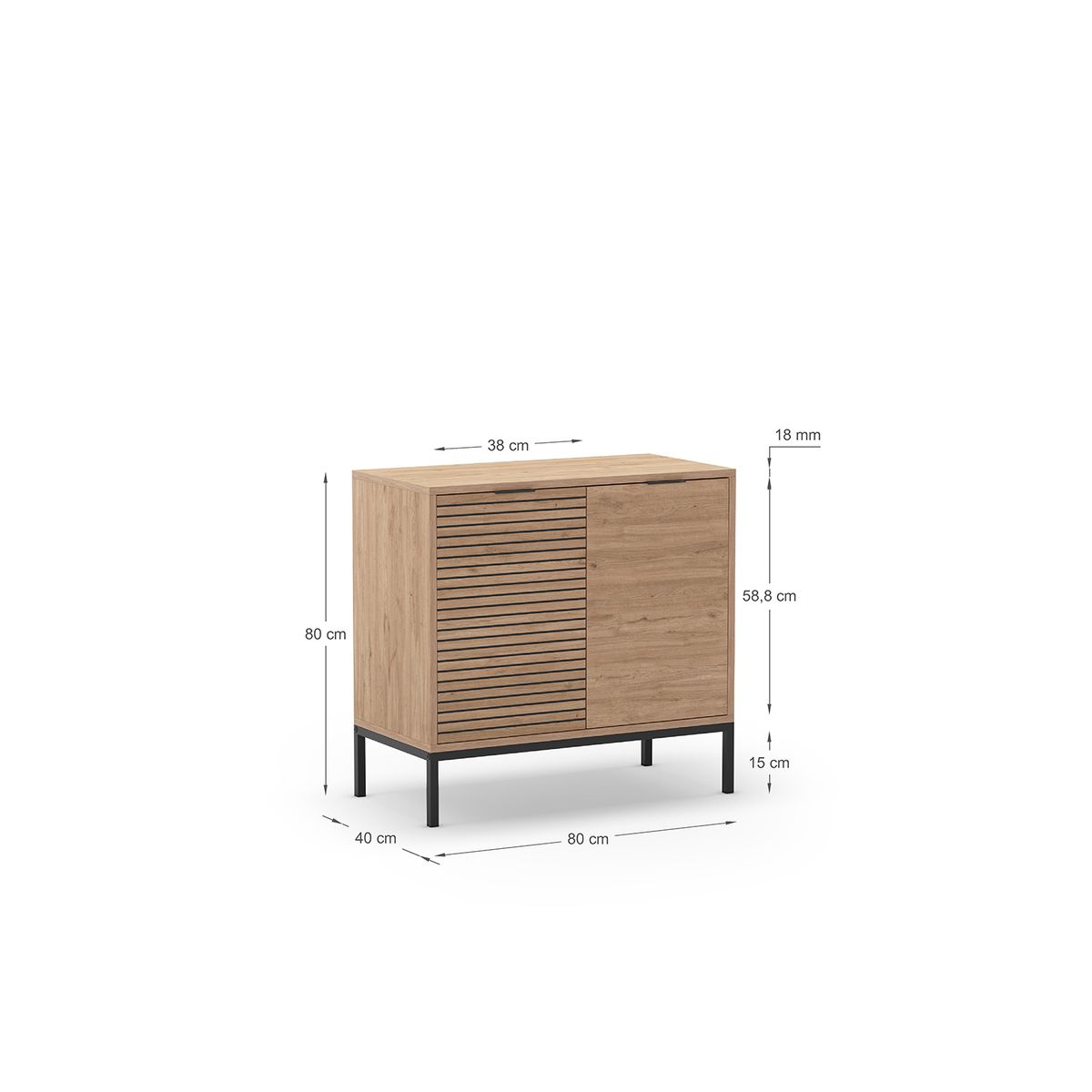 Sideboard aus Holz und Metall in Eichenoptik, 80 x 40 x 80 cm | Ariel