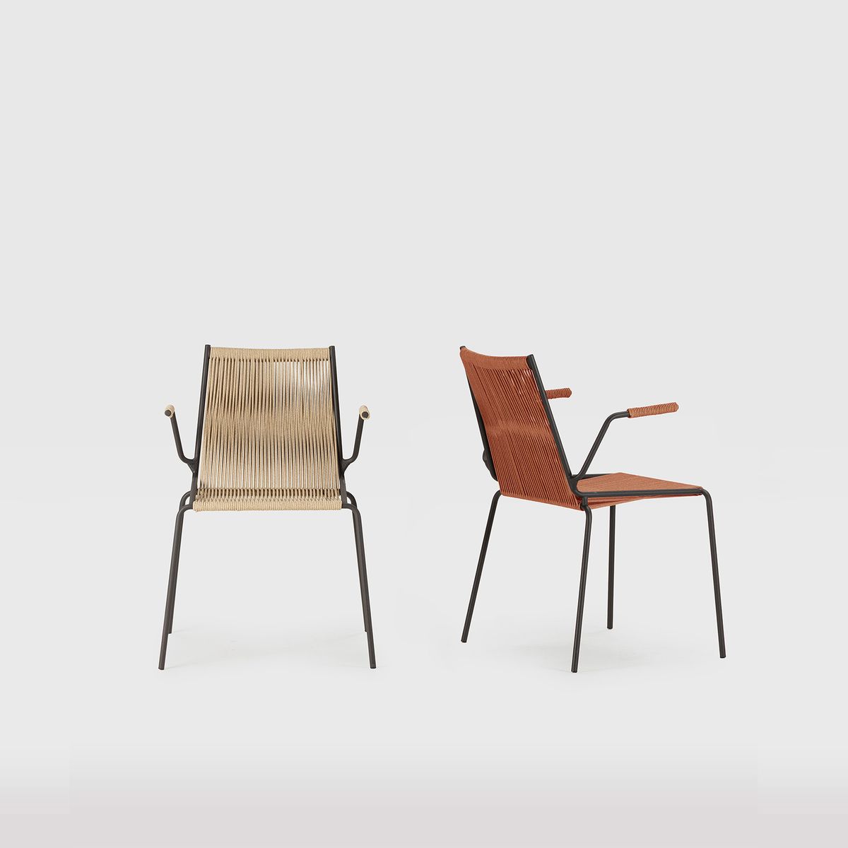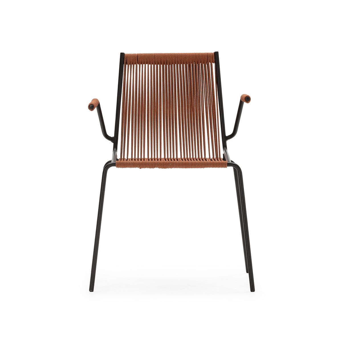 Stuhl mit Armlehnen aus Seil und Metall in Terrakotta, 55 x 57 x 82 cm | Emily